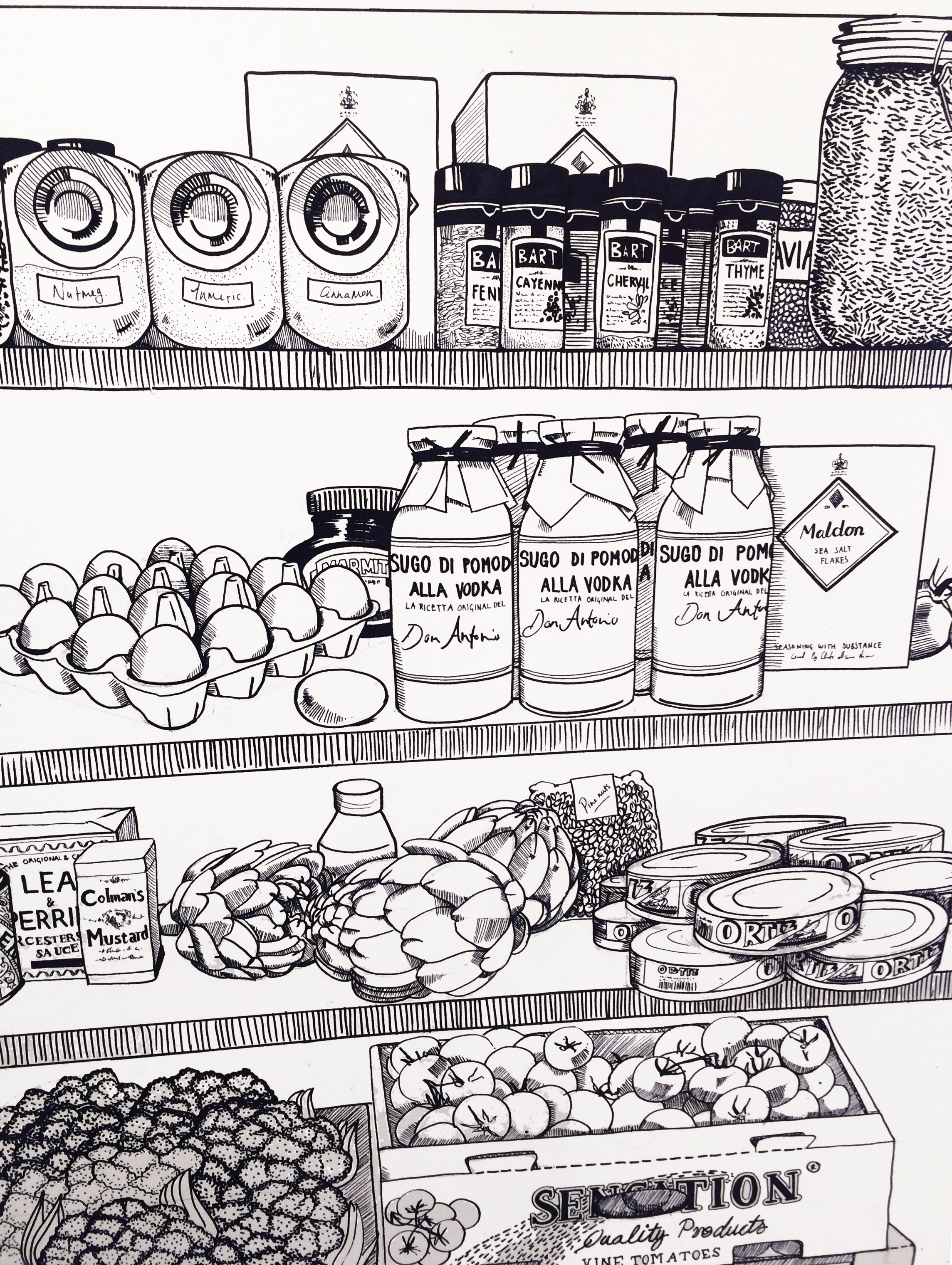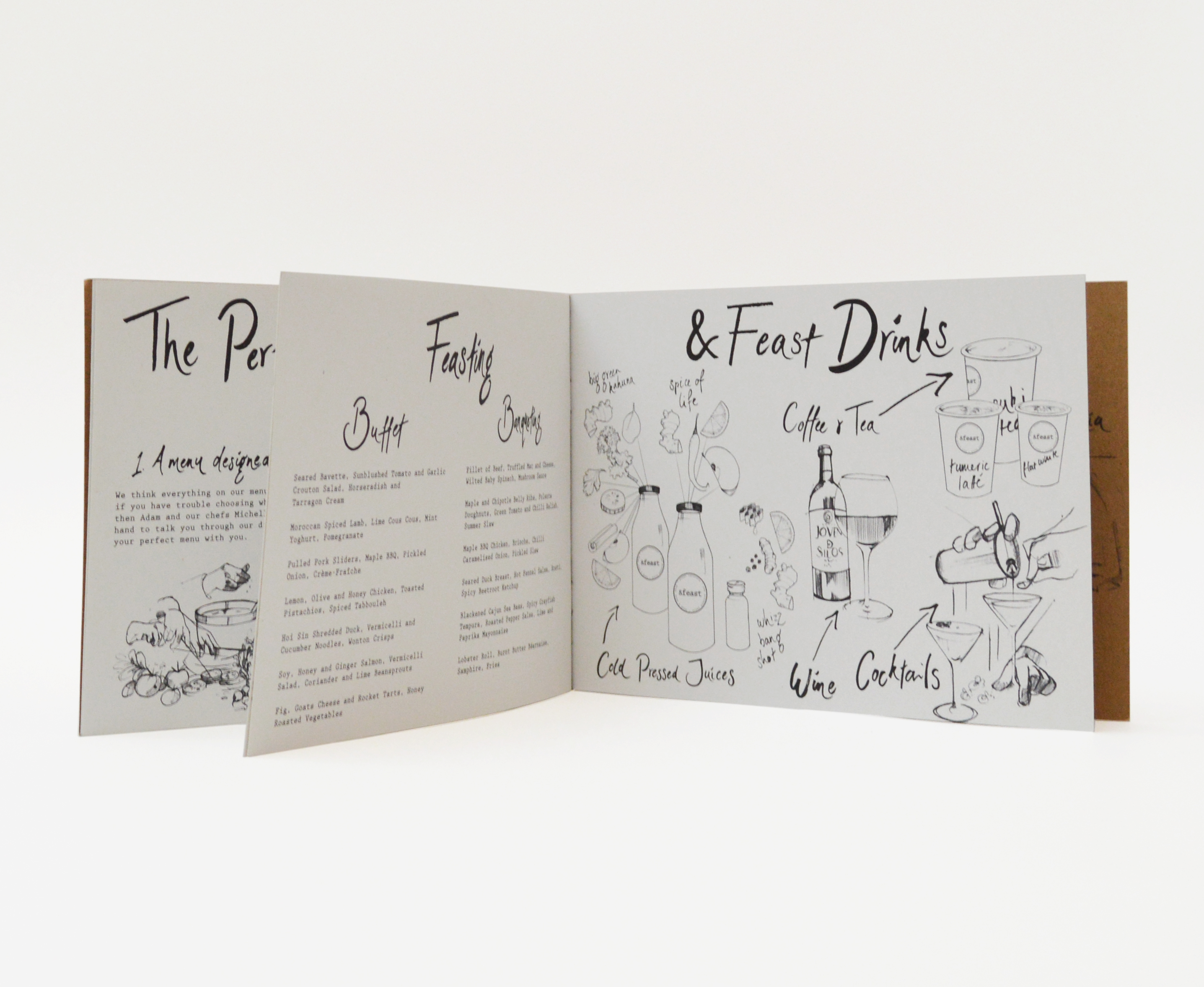 Brand illsutrations for a local deli including murals, website illustrations, menus and brochures.